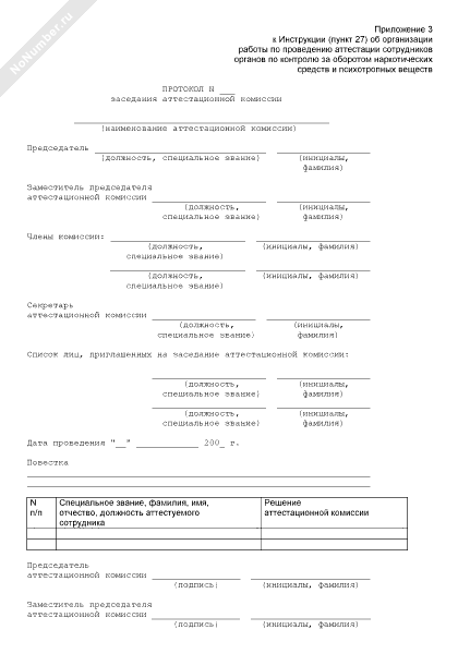 Протокол заседания аттестационной комиссии в органах наркоконтроля