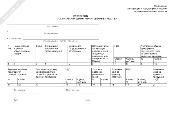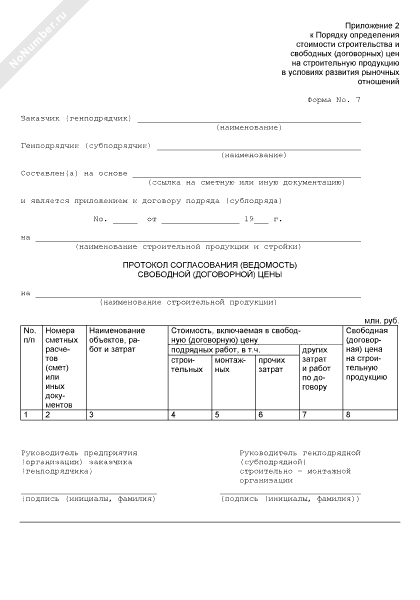 Протокол согласования (ведомость) свободной (договорной) цены (форма № 7)