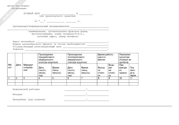 Путевой лист учебного автомобиля образовательного учреждения (организации) по подготовке (переподготовке) водителей транспортных средств в Московской области