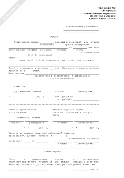 - 29Рапорт о предоставлении путевки в санаторий, дом отдыха сотруднику уголовно-исполнительной системы и членам его семьи