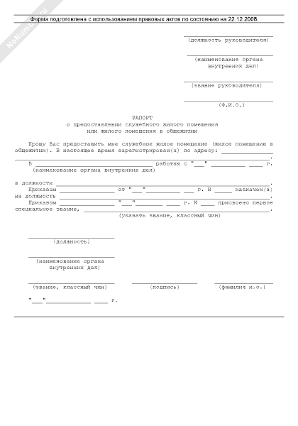 - 30Рапорт о предоставлении служебного жилого помещения или жилого помещения в общежитии