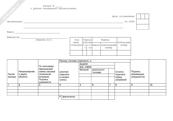 - 39Рапорт обходчика трассы газопроводов. Форма № 15-Э