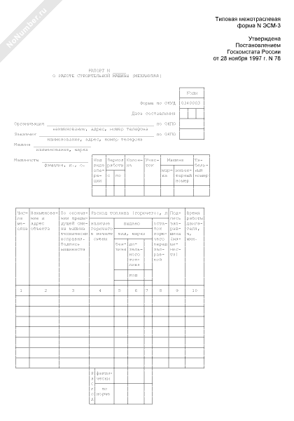 - 34Рапорт о работе строительной машины (механизма) (типовая межотраслевая форма № ЭСМ-3)