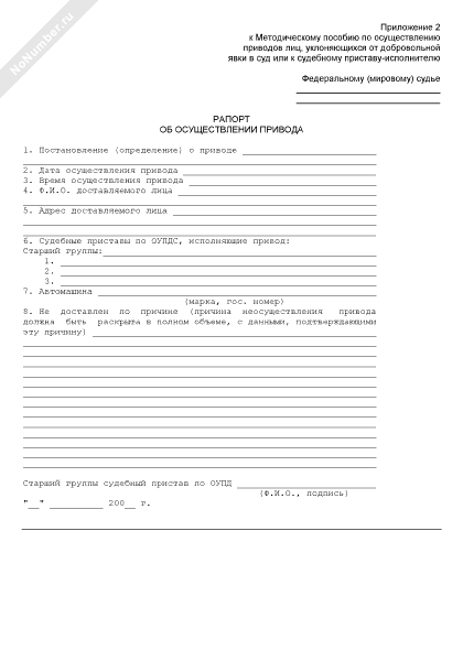 - 37Рапорт об осуществлении привода лица, уклоняющегося от добровольной явки в суд или к судебному приставу-исполнителю