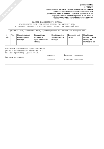 - 216Расчет должностного оклада, применяемого для исчисления пенсии за выслугу лет, и размера надбавки к должностному окладу за классный чин в городском поселении Егорьевск Егорьевского муниципального района Московской области