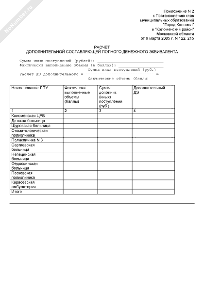 - 218Расчет дополнительной составляющей полного денежного эквивалента по территориальной программе государственных гарантий оказания гражданам города Коломны и Коломенского района бесплатной медицинской помощи