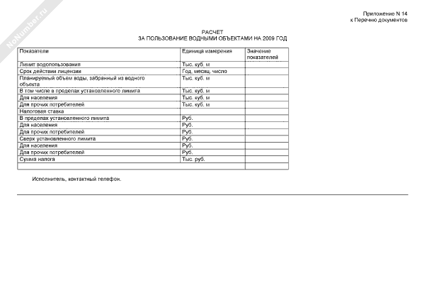 - 241Расчет за пользование водными объектами на 2009 год на территории Шатурского муниципального района Московской области