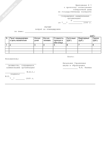 - 248Расчет затрат на командировки (приложение к протоколу согласования контрактной цены по государственному контракту на выполнение в 2009 году научно-исследовательских и опытно-конструкторских работ по направлению «Научное обеспечение мероприятий по разработке нормативов расходов на осуществление мероприятий по охране водных биоресурсов и среды их обитания, искусственному воспроизводству водных биоресурсов, акклиматизации и рыбохозяйственной мелиорации» для нужд Федерального агентства по рыболовству)