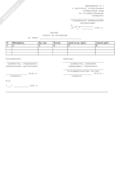 - 250Расчет затрат на материалы (приложение к протоколу согласования контрактной цены по государственному контракту на выполнение в 2008 году научно-исследовательских и опытно-конструкторских работ по направлению «Проведение исследований в области экономики и управления рыбохозяйственным комплексом» для нужд госкомрыболовства России)
