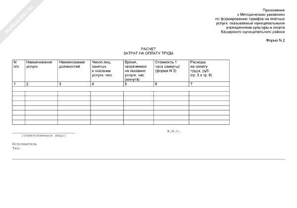 - 255Расчет затрат на оплату труда в муниципальных учреждениях культуры и спорта Каширского муниципального района Московской области (форма № 2)