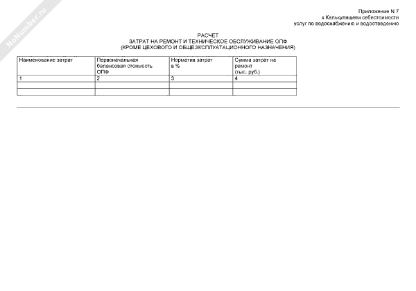 - 258Расчет затрат на ремонт и техническое обслуживание ОПФ (кроме цехового и общеэксплуатационного назначения) (приложение к калькуляциям себестоимости услуг по водоснабжению и водоотведению в Дмитровском муниципальном районе Московской области)