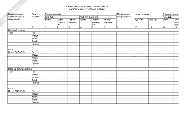 - 256Расчет затрат на топливо для выработки электрической и тепловой энергии (таблица № П1.11)
