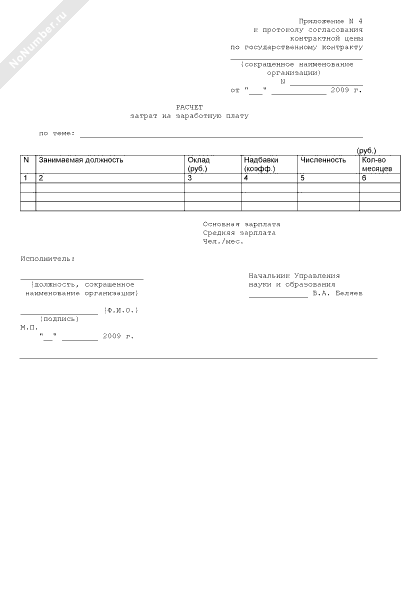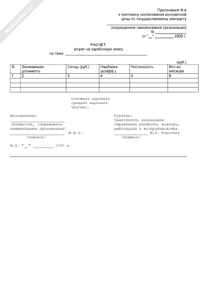 - 254Расчет затрат на заработную плату (приложение к протоколу согласования контрактной цены по государственному контракту на выполнение в 2009 году научно-исследовательских и опытно-конструкторских работ по направлению «Научное обеспечение мероприятий по разработке нормативов расходов на осуществление мероприятий по охране водных биоресурсов и среды их обитания, искусственному воспроизводству водных биоресурсов, акклиматизации и рыбохозяйственной мелиорации» для нужд Федерального агентства по рыболовству)
