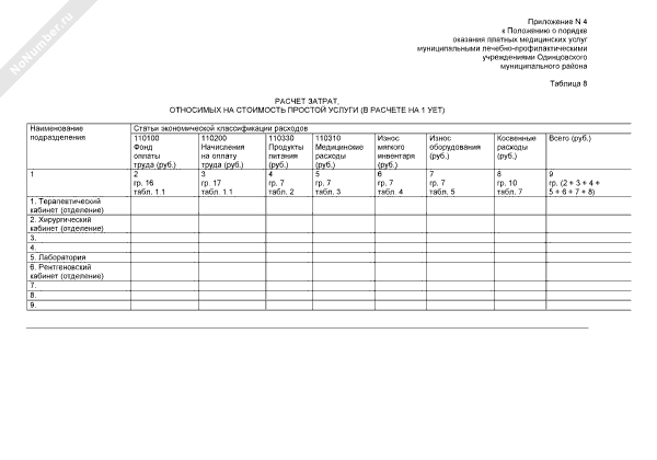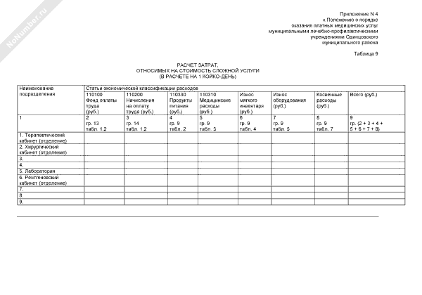 - 285Расчет затрат, относимых на стоимость сложной услуги муниципальными лечебно-профилактическими учреждениями Одинцовского муниципального района (в расчете на 1 койко-день)