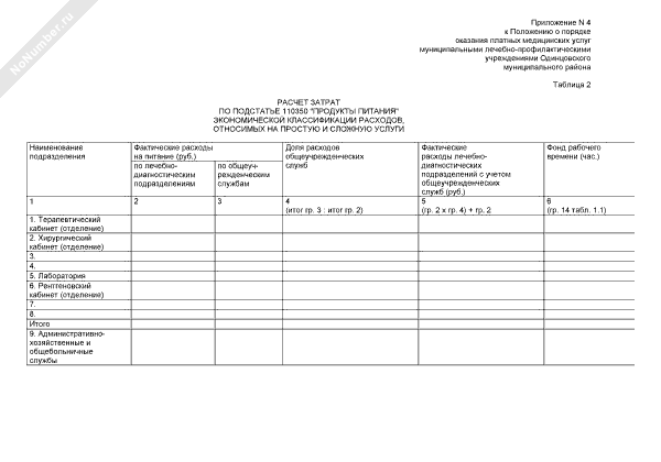 - 282Расчет затрат по подстатье 110350 «Продукты питания» экономической классификации расходов, относимых на простую и сложную услуги муниципальными лечебно-профилактическими учреждениями Одинцовского муниципального района