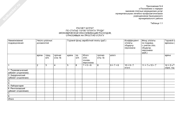 - 283Расчет затрат по статье 110100 «Оплата труда» экономической классификации расходов, относимых на простую услугу муниципальными лечебно-профилактическими учреждениями Одинцовского муниципального района