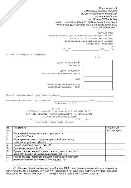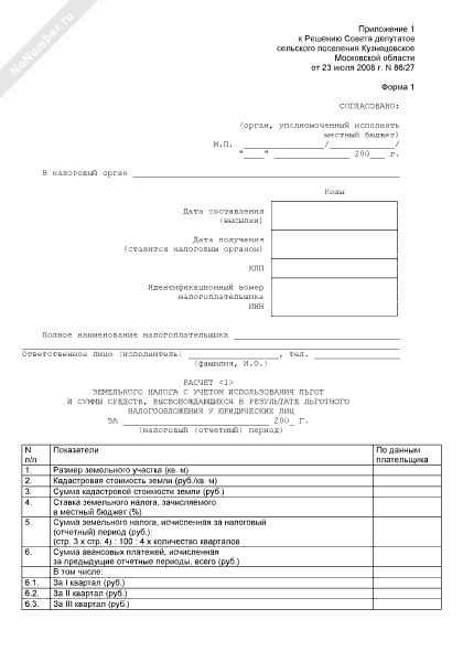 - 293Расчет земельного налога с учетом использования льгот и суммы средств, высвобождающихся в результате льготного налогообложения у юридических лиц на территории сельского поселения Кузнецовское Павлово-Посадского муниципального района Московской области (форма № 1)