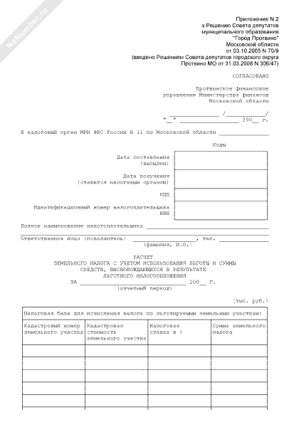 - 296Расчет земельного налога с учетом использования льготы и суммы средств, высвобождающихся в результате льготного налогообложения в г. Протвино Московской области