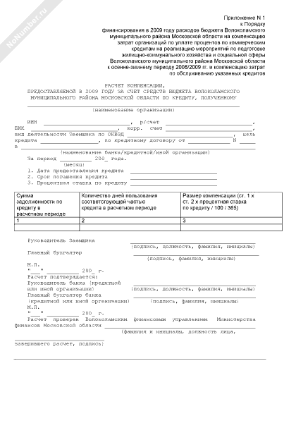 - 352Расчет компенсации, предоставляемой в 2009 году за счет средств бюджета Волоколамского муниципального района Московской области по оплате расходов, связанных с организацией финансирования мероприятий по подготовке жилищно-коммунального хозяйства и социальной сферы Волоколамского муниципального района Московской области к осенне-зимнему периоду 2008/2009 гг.