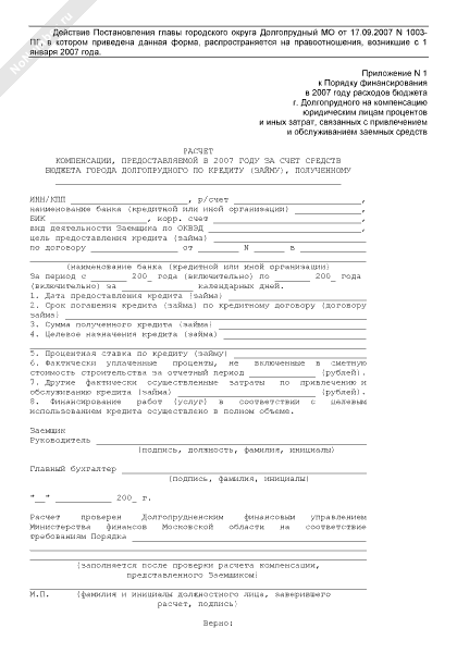 - 359Расчет компенсации, предоставляемой юридическому лицу за счет средств бюджета города Долгопрудного Московской области по кредиту (займу)