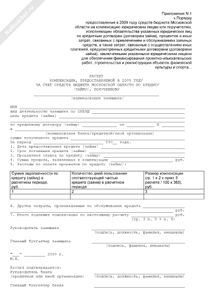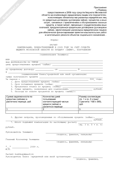 - 348Расчет компенсации, предоставляемой в 2009 году за счет средств бюджета Московской области по кредиту (займу)
