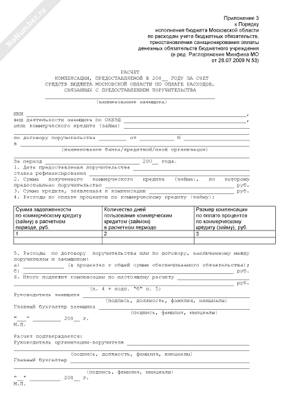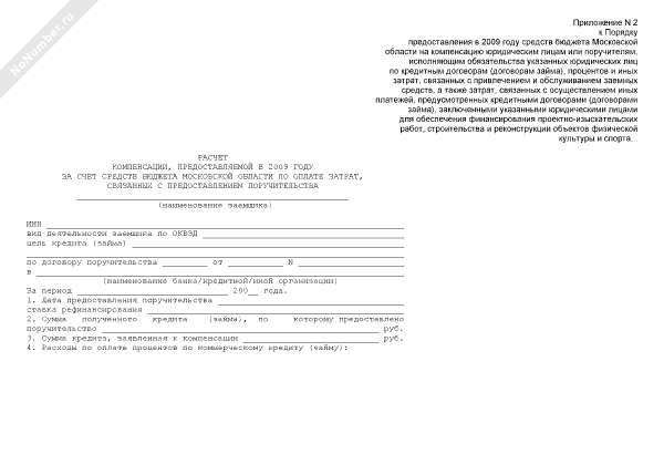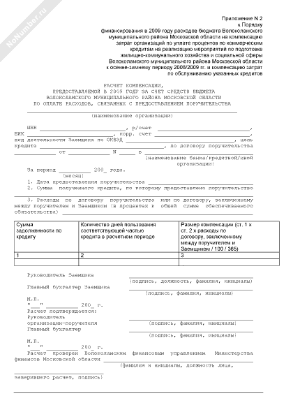 - 347Расчет компенсации, предоставляемой в 2009 году за счет средств бюджета Московской области по оплате затрат, связанных с предоставлением поручительства