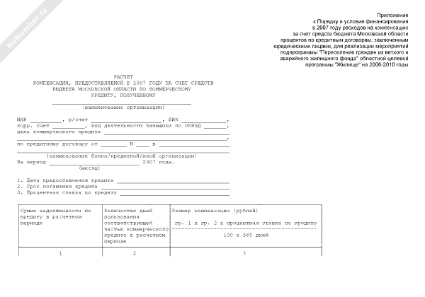 - 349Расчет компенсации, предоставляемой в 2007 году за счет средств бюджета Московской области по коммерческому кредиту