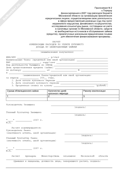 - 351Расчет компенсации расходов по уплате купонного дохода по облигационным займам, привлеченным юридическими лицами для обеспечения финансирования программы по развитию ипотечного жилищного кредитования в Московской области в 2005-2010 годах, утверждаемой Правительством Московской области