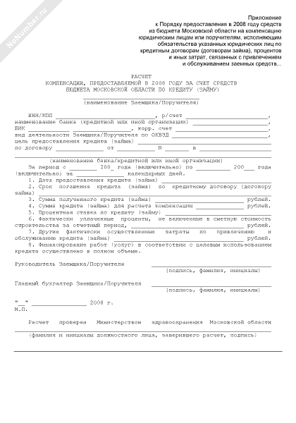 - 345Расчет компенсации, предоставляемой в 2008 году за счет средств бюджета Московской области по оплате расходов, связанных с предоставлением поручительства организации