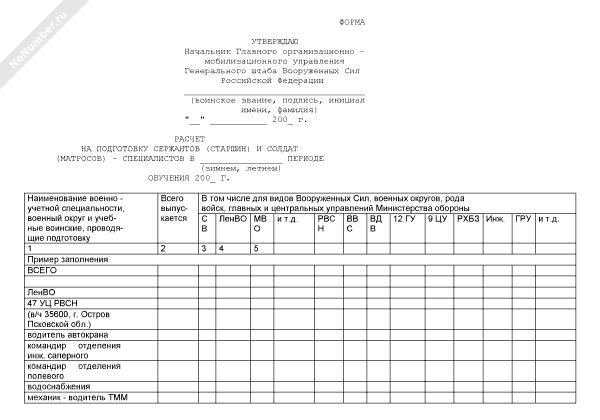 - 422Расчет на подготовку сержантов (старшин) и солдат (матросов) — специалистов в период обучения