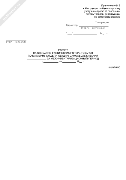 - 423Расчет на списание фактических потерь товаров по магазину (отделу, секции) самообслуживания за межинвентаризационный период