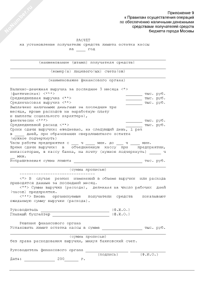 - 425Расчет на установление получателю средств бюджета города Москвы лимита остатка кассы