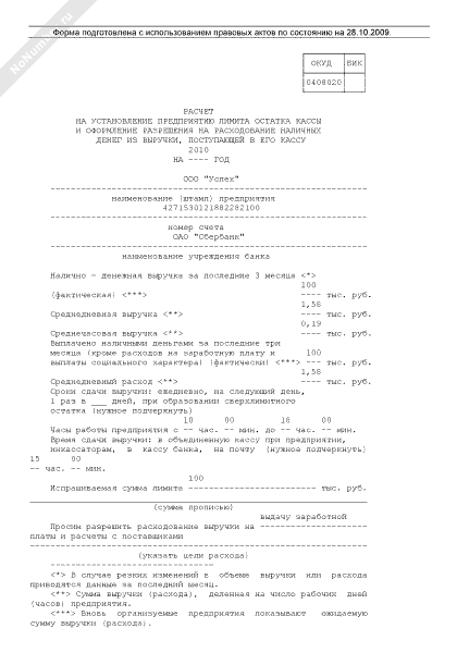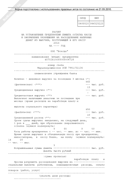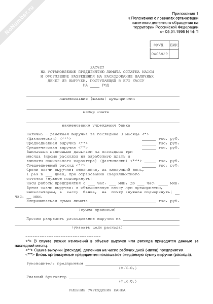 - 426Расчет на установление предприятию лимита остатка кассы и оформление разрешения на расходование наличных денег из выручки, поступающей в его кассу