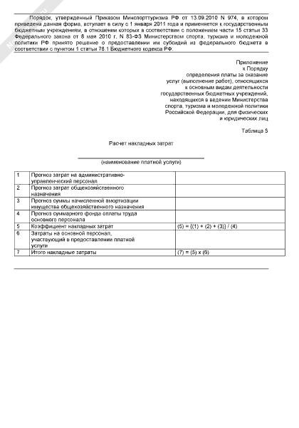 - 431Расчет накладных затрат платной услуги государственным бюджетным учреждением, находящимся в ведении Министерства спорта, туризма и молодежной политики Российской Федерации