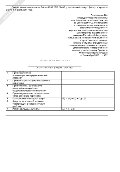 - 429Расчет накладных затрат, используемых при оказании услуги (работы), относящейся к основному виду деятельности федерального бюджетного учреждения, находящегося в ведении Министерства экономического развития Российской Федерации