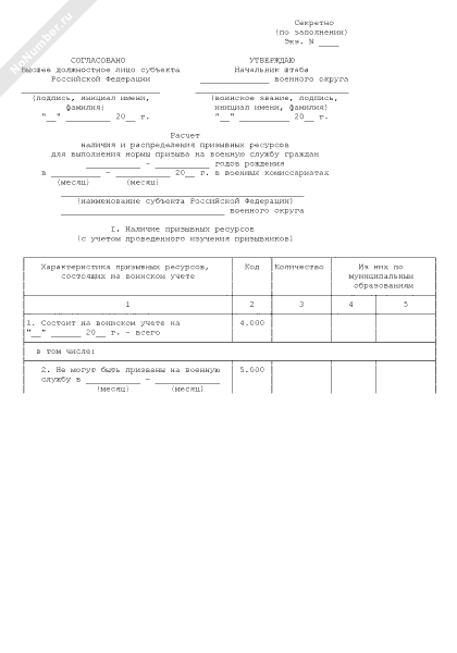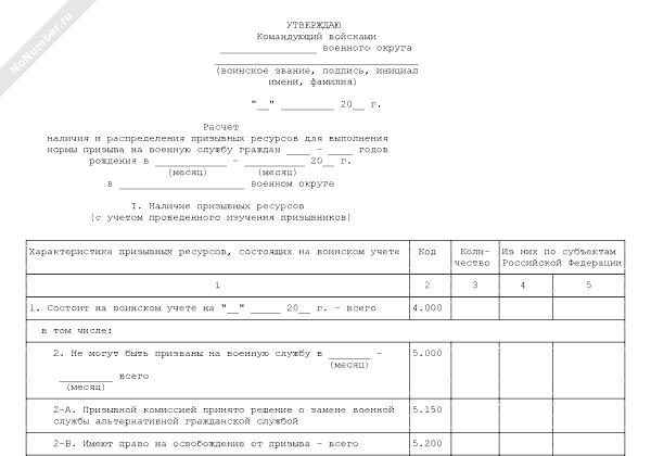 - 433Расчет наличия и распределения призывных ресурсов для выполнения нормы призыва на военную службу граждан в военном округе