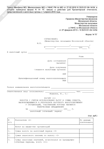 - 481Расчет налогов с учетом использования льгот и суммы средств, высвобождающихся в результате льготного налогообложения у организаций, участниками которых являются религиозные объединения Московской области. Форма № 14 «б»