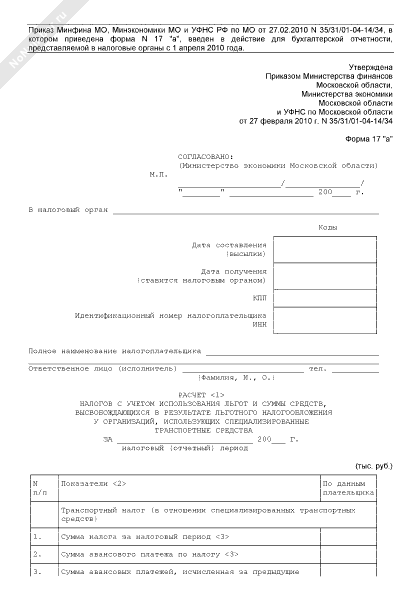 - 483Расчет налогов с учетом использования льгот и суммы средств, высвобождающихся в результате льготного налогообложения у организаций, использующих специализированные транспортные средства. Форма 17 «а»