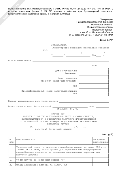- 487Расчет налогов с учетом использования льгот и суммы средств, высвобождающихся в результате льготного налогообложения у организаций Московской области, осуществляющих международные автомобильные перевозки грузов. Форма № 24 «б»