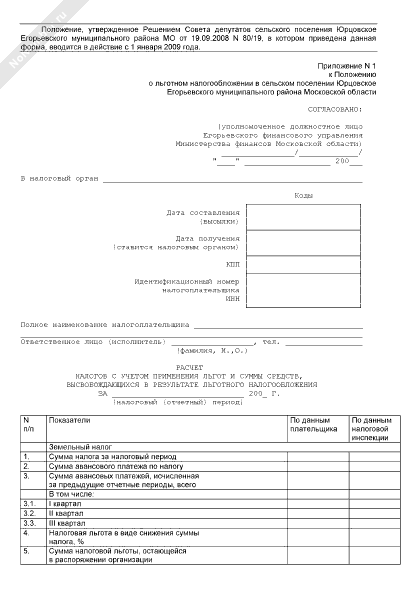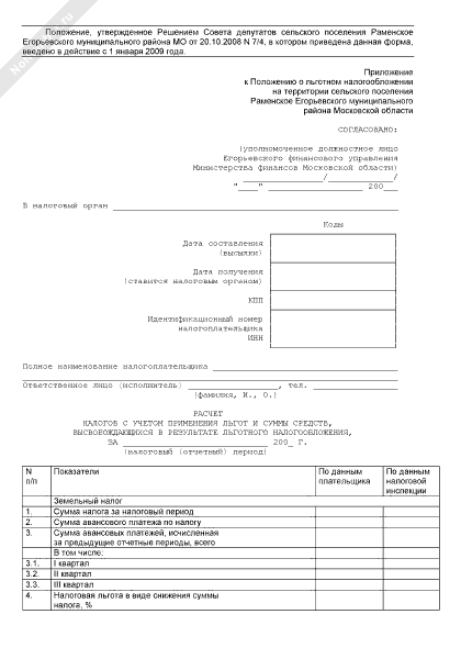 - 495Расчет налогов с учетом применения льгот и суммы средств, высвобождающихся в результате льготного налогообложения на территории сельского поселения Раменское Егорьевского муниципального района Московской области