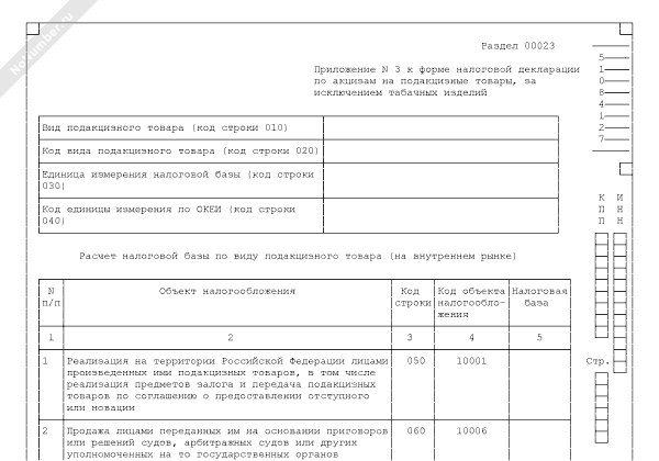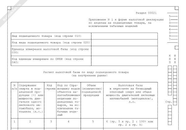 - 500Расчет налоговой базы по виду подакцизного товара (на внутреннем рынке) (приложение к налоговой декларации по акцизам на подакцизные товары, за исключением табачных изделий)