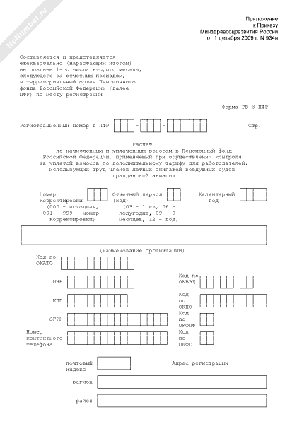 - 624Расчет по начисленным и уплаченным взносам в Пенсионный фонд Российской Федерации, применяемый при осуществлении контроля за уплатой взносов по дополнительному тарифу для работодателей, использующих труд членов летных экипажей воздушных судов гражданской авиации. Форма № РВ-3 ПФР