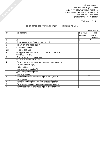 - 635Расчет полезного отпуска электрической энергии по энергоснабжающей организации (таблица № П1.2.2)