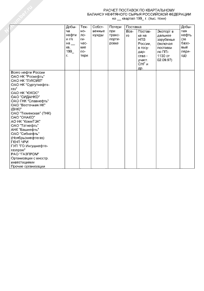 - 637Расчет поставок по квартальному балансу нефтяного сырья Российской Федерации (форма № 1)