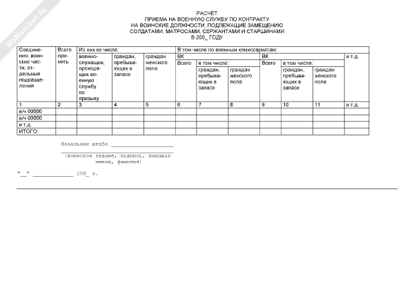- 662Расчет приема на военную службу по контракту на воинские должности, подлежащие замещению солдатами, матросами, сержантами и старшинами