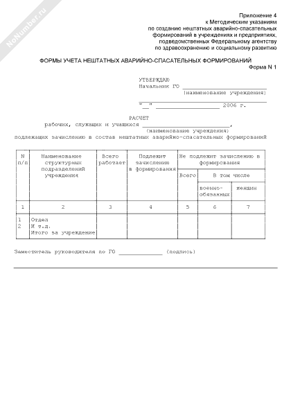 - 680Расчет рабочих, служащих и учащихся учреждения, подведомственного Росздраву, подлежащих зачислению в состав нештатных аварийно-спасательных формирований (форма № 1)