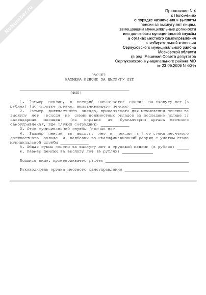 - 761Расчет размера пенсии за выслугу лет лицу, замещавшему муниципальную должность или должность муниципальной службы в органах местного самоуправления и избирательной комиссии Серпуховского муниципального района Московской области