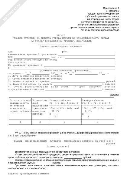 - 766Расчет размера субсидии из бюджета города Москвы на возмещение части затрат на уплату процентов по кредиту (приложение к договору о предоставлении субсидии из бюджета города Москвы)