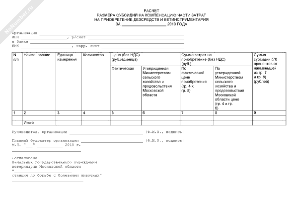 - 769Расчет размера субсидий из бюджета Московской области на компенсацию части затрат на приобретение дезсредств и ветинструментария