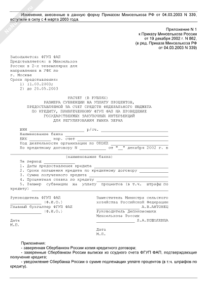 - 765Расчет размера субвенции на уплату процентов, предоставляемой за счет средств федерального бюджета по кредиту, привлеченному федеральному агентству по регулированию продовольственного рынка при Минсельхозе России на проведение государственных закупочных интервенций для регулирования рынка зерна